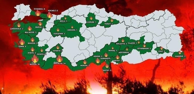 Σε πύρινο κλοιό…Οι δασικές πυρκαγιές πλήττουν μεταξύ άλλων επί του παρόντος τις ακόλουθες περιοχές στην Τουρκία: περιοχή Manavgat στην Αττάλεια, περιοχή Aydıncık στη Μερσίνα, χωριό Kırmacılı και περιοχή Karacalar στην Osmaniye, 21 ζώνες γύρω από την πόλη των Αδάνων και περιοχές Marmaris και İçmeler στην επαρχία Muğla.Ξένοι τουρίστες διατρέχουν κίνδυνο και προσπαθούν να τους κατευθύνουν…